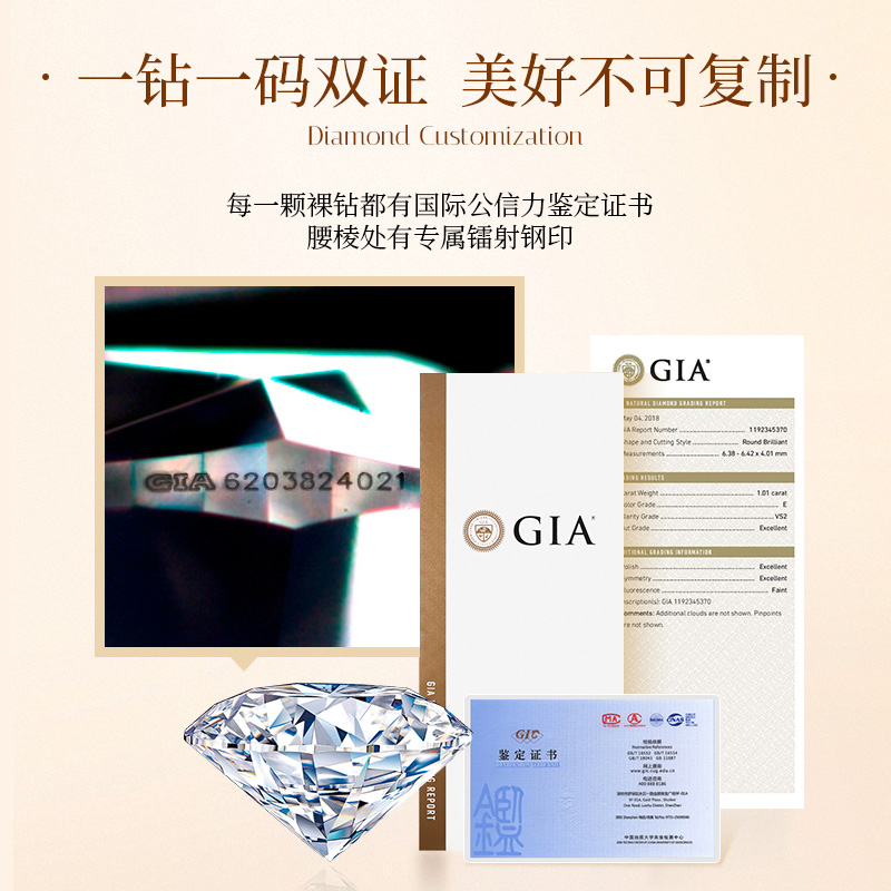 GIA国际钻石证书与国检证书,双证质保,品质无忧;