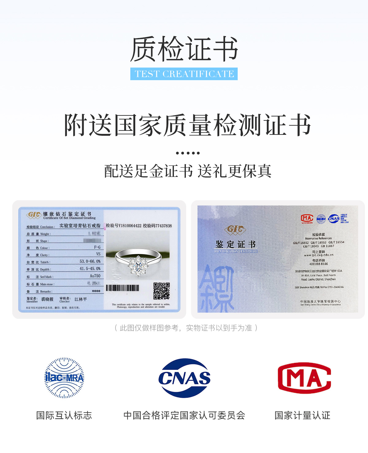 GIA国际钻石证书与国检证书,双证质保,品质无忧;